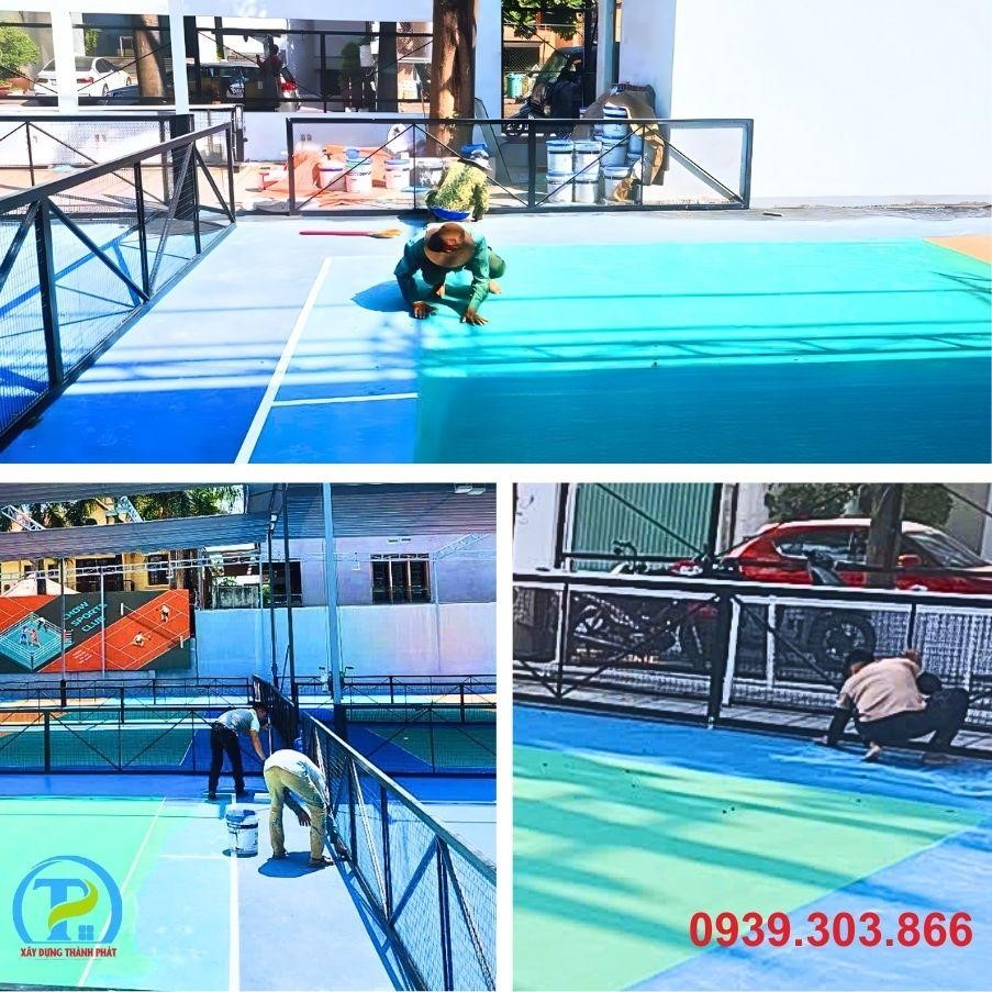 3. Thi Công Sơn Bề Mặt: Thi công hệ thống sơn Acrylic chuyên dụng cho sân thể thao.