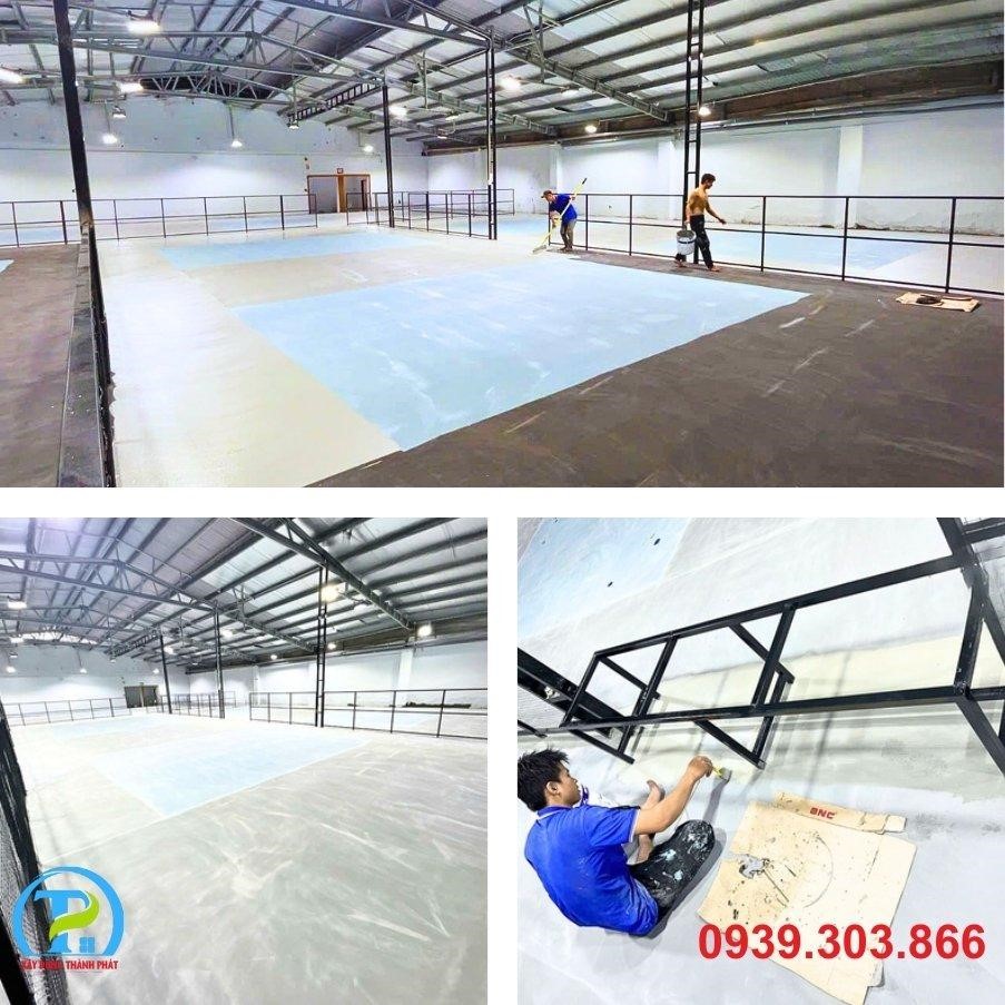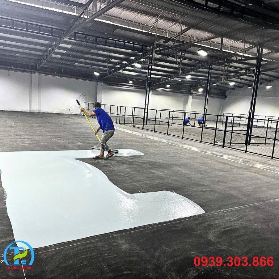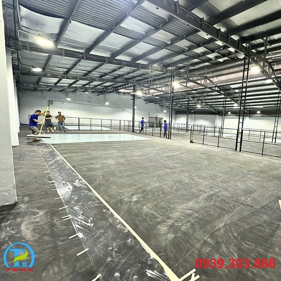 - Giai đoạn 2: Xây dựng nền móng: Tiến hành đổ bê tông hoặc làm nền asphan tiêu chuẩn, sau đó thực hiện các lớp sơn lót và sơn phủ chuyên dụng cho sân thể thao.