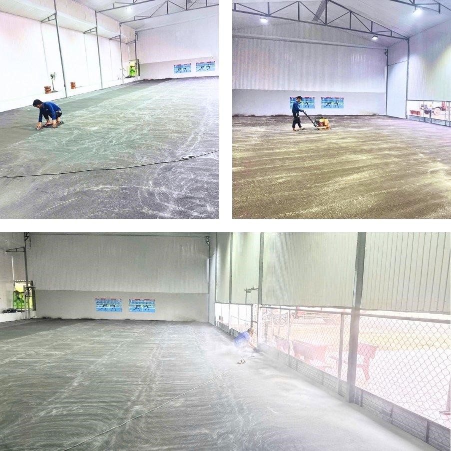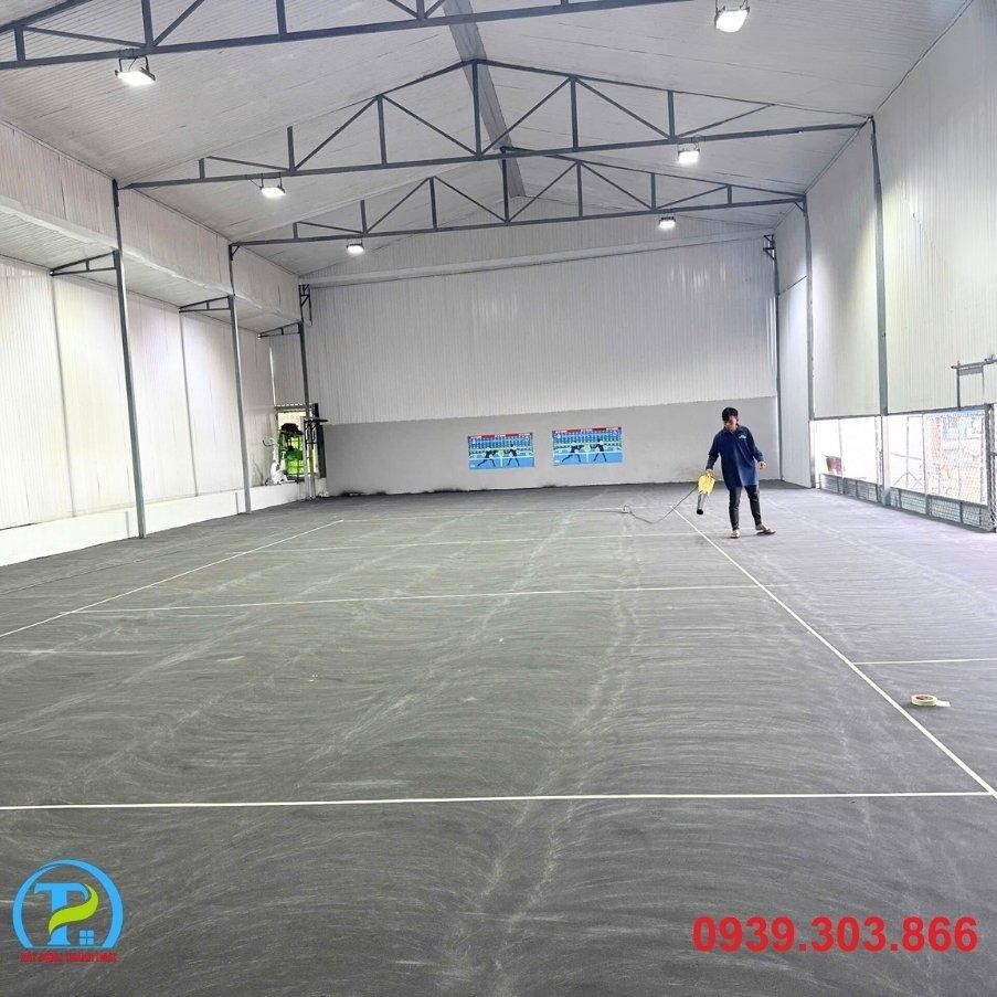 - Xây dựng kết cấu sân: Thi công lớp nền bê tông hoặc asphalt chuyên dụng, tập trung vào độ phẳng tuyệt đối. Thực hiện xử lý chống nứt và làm phẳng bề mặt kỹ lưỡng.