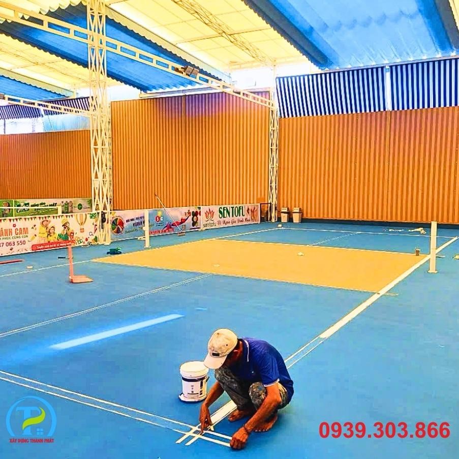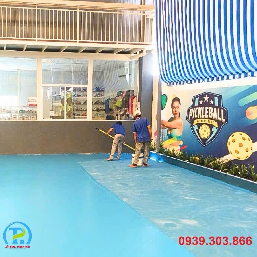 • Lớp màu hoàn thiện: Thi công nhiều lớp sơn Acrylic chuyên dụng cho sân thể thao, đảm bảo độ bền màu, chống trơn trượt và đạt chuẩn thi đấu quốc tế.