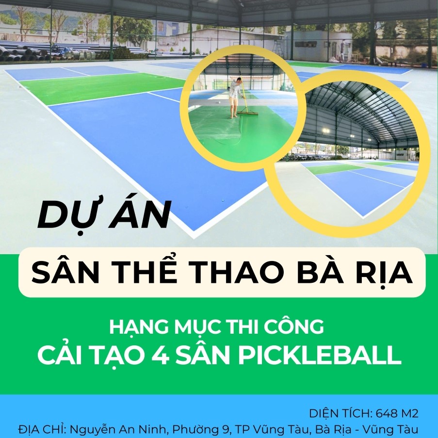 Dự án Sân Thể thao Bà Rịa là một công trình cải tạo và nâng cấp cơ sở hạ tầng thể thao quan trọng tại khu vực. Dự án tập trung vào việc Thi công cải tạo 4 sân Pickleball hiện đại, đáp ứng nhu cầu ngày càng tăng về môn thể thao này. Tọa lạc tại địa chỉ chiến lược Nguyễn An Ninh, Phường 9, TP Vũng Tàu, Bà Rịa – Vũng Tàu, dự án hứa hẹn mang đến một điểm đến lý tưởng cho cộng đồng yêu thích thể thao. Với tổng Diện tích 648 M2, quy mô này đảm bảo không gian rộng rãi, đạt tiêu chuẩn cho việc luyện tập và tổ chức các giải đấu pickleball. Việc cải tạo không chỉ nhằm mục đích nâng cao chất lượng sân bãi mà còn góp phần tạo dựng một môi trường thể thao chuyên nghiệp và an toàn.