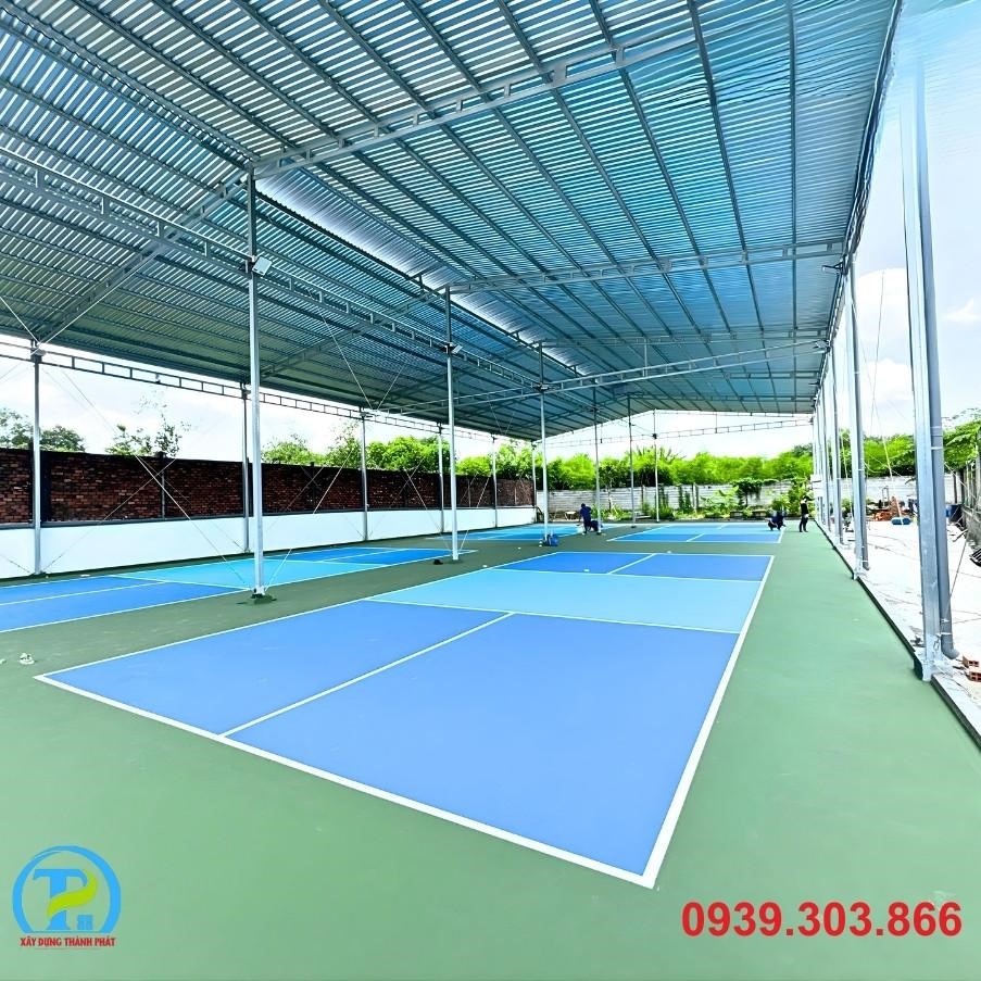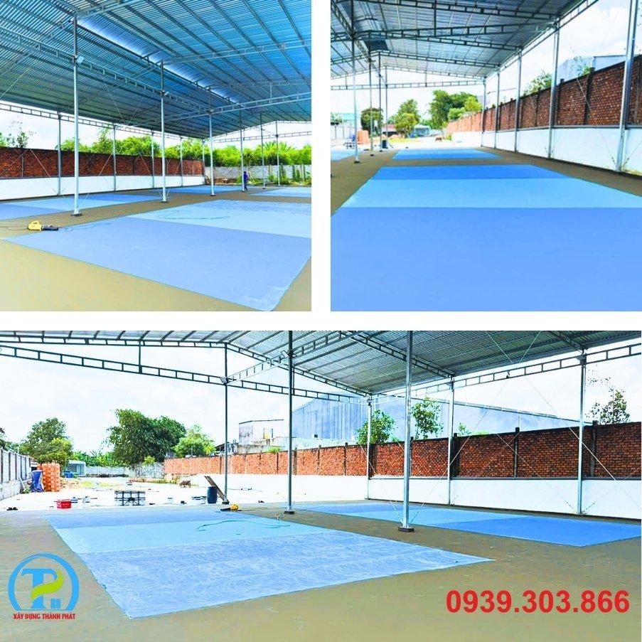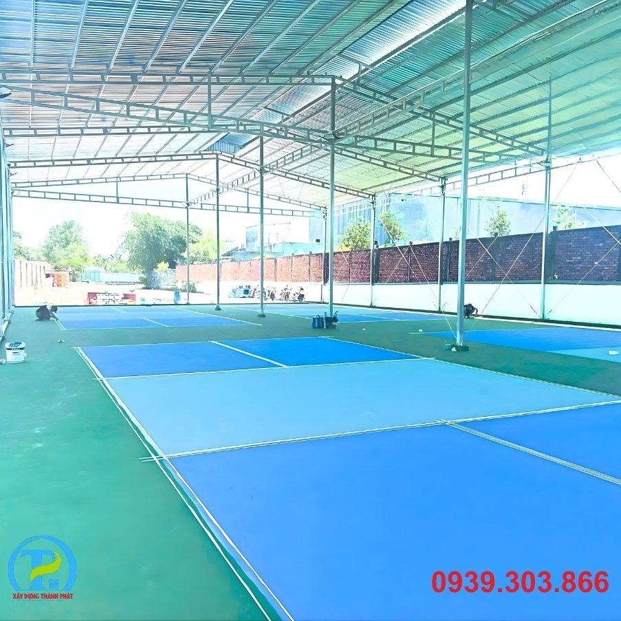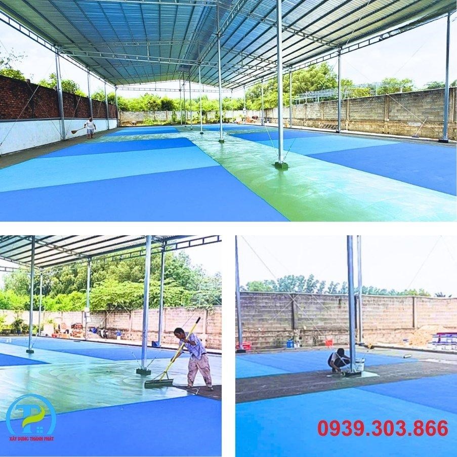 - Thi công bề mặt: Thi công các lớp sơn chuyên dụng, chống trượt, chống tia UV, tạo ra mặt sân có tuổi thọ cao và an toàn cho người chơi.